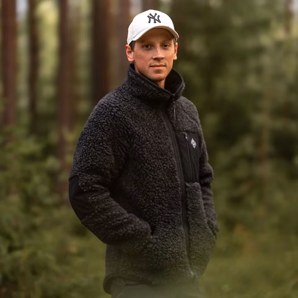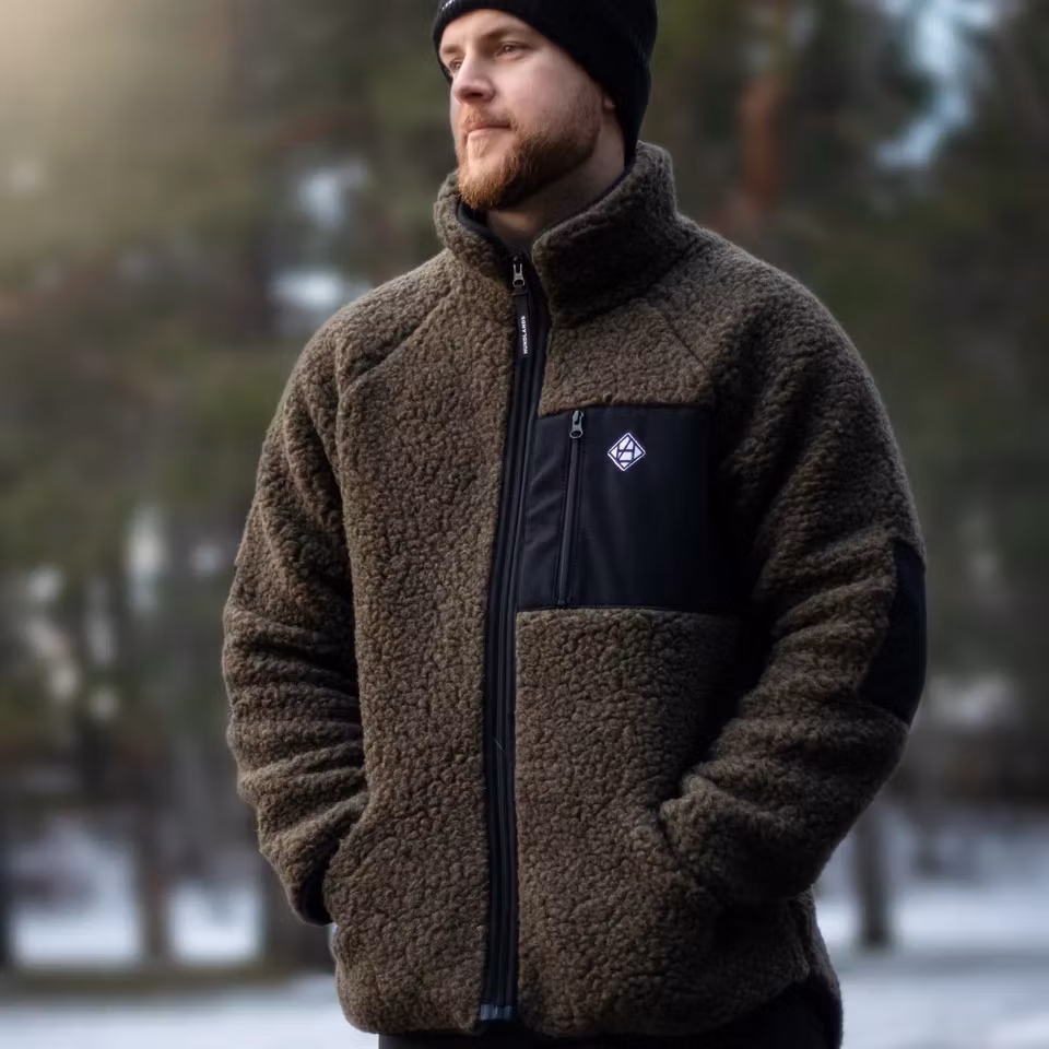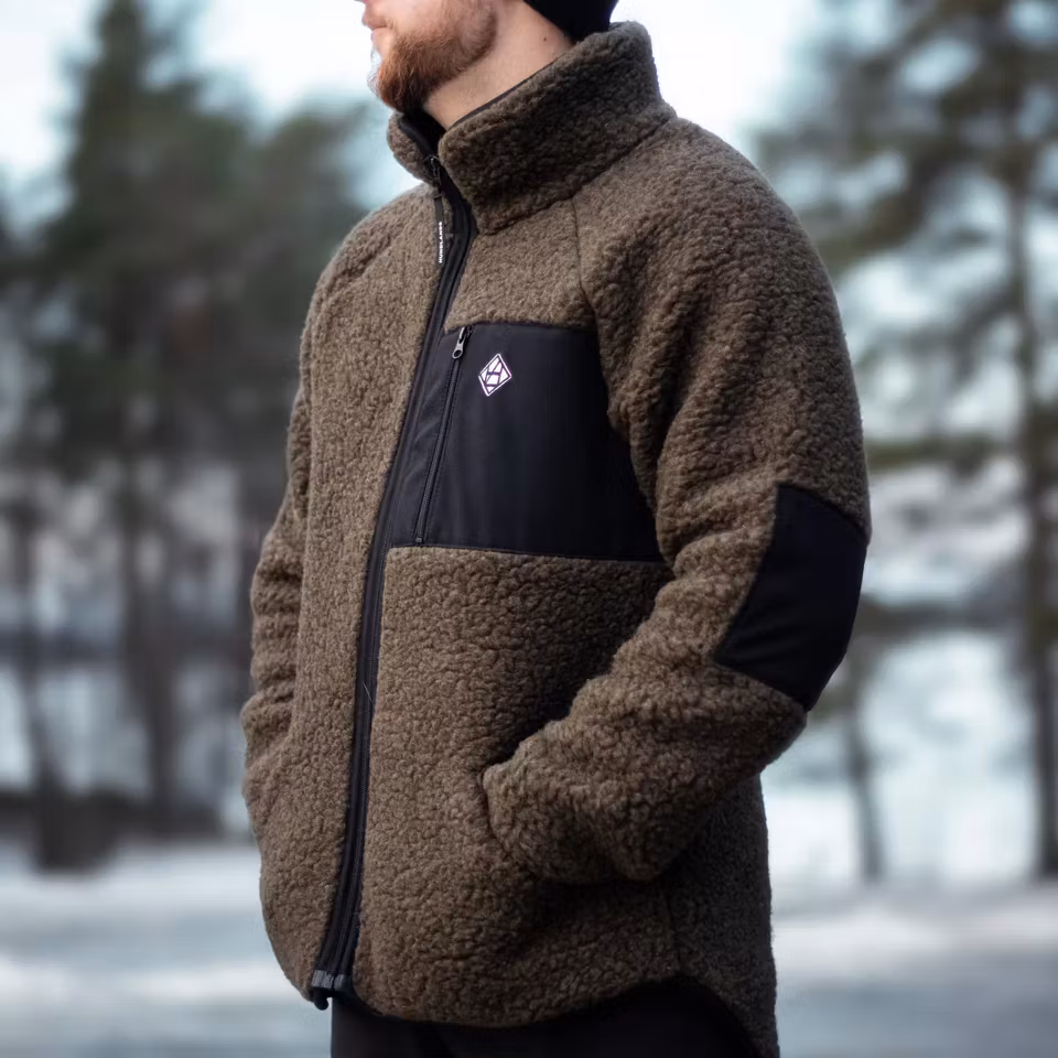 Varm og koselig jakke i tykk pile laget av 100 % merinoull. Ullen gjør at jakken puster godt og holder deg behagelig varm uten å bli kompakt. I likhet med andre naturmaterialer mykner den og former seg etter kroppen ved bruk. Glidelåsen (YKK) er utvendig, og albuene er forsterket for å øke levetiden. Jakken er utstyrt med to generøse lommer nederst samt en brystlomme på venstre side.