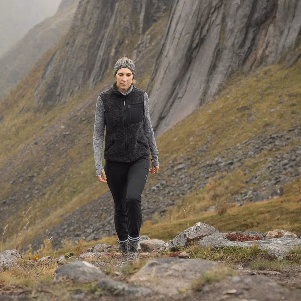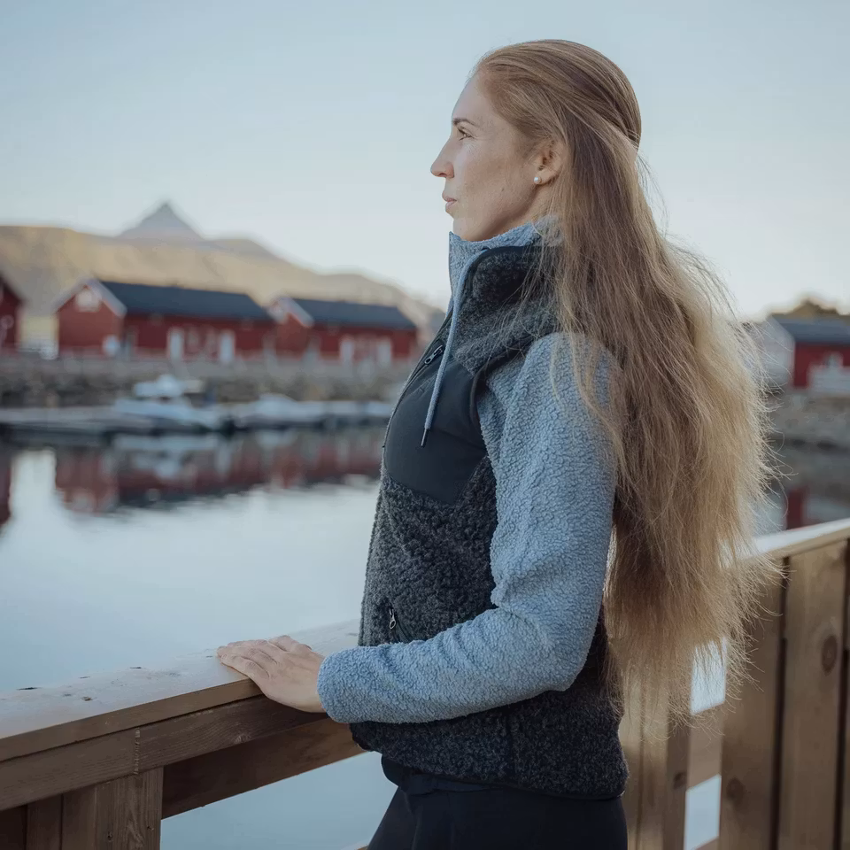 Når du får ullvesten hjem, kan den oppleves som stiv, men dette forsvinner når du har brukt plagget en stund. Materialet puster svært godt og varmer deg behagelig uten å føles kompakt.